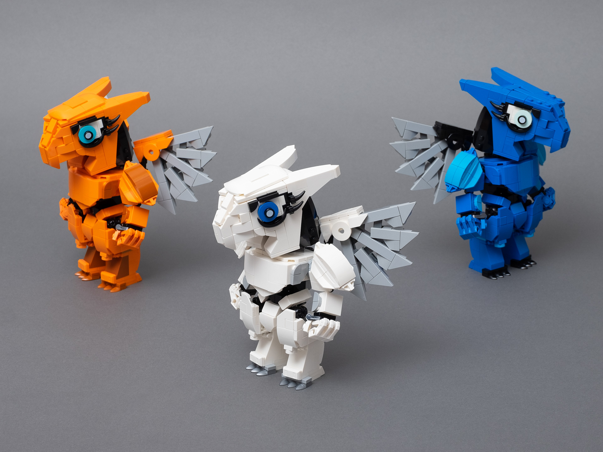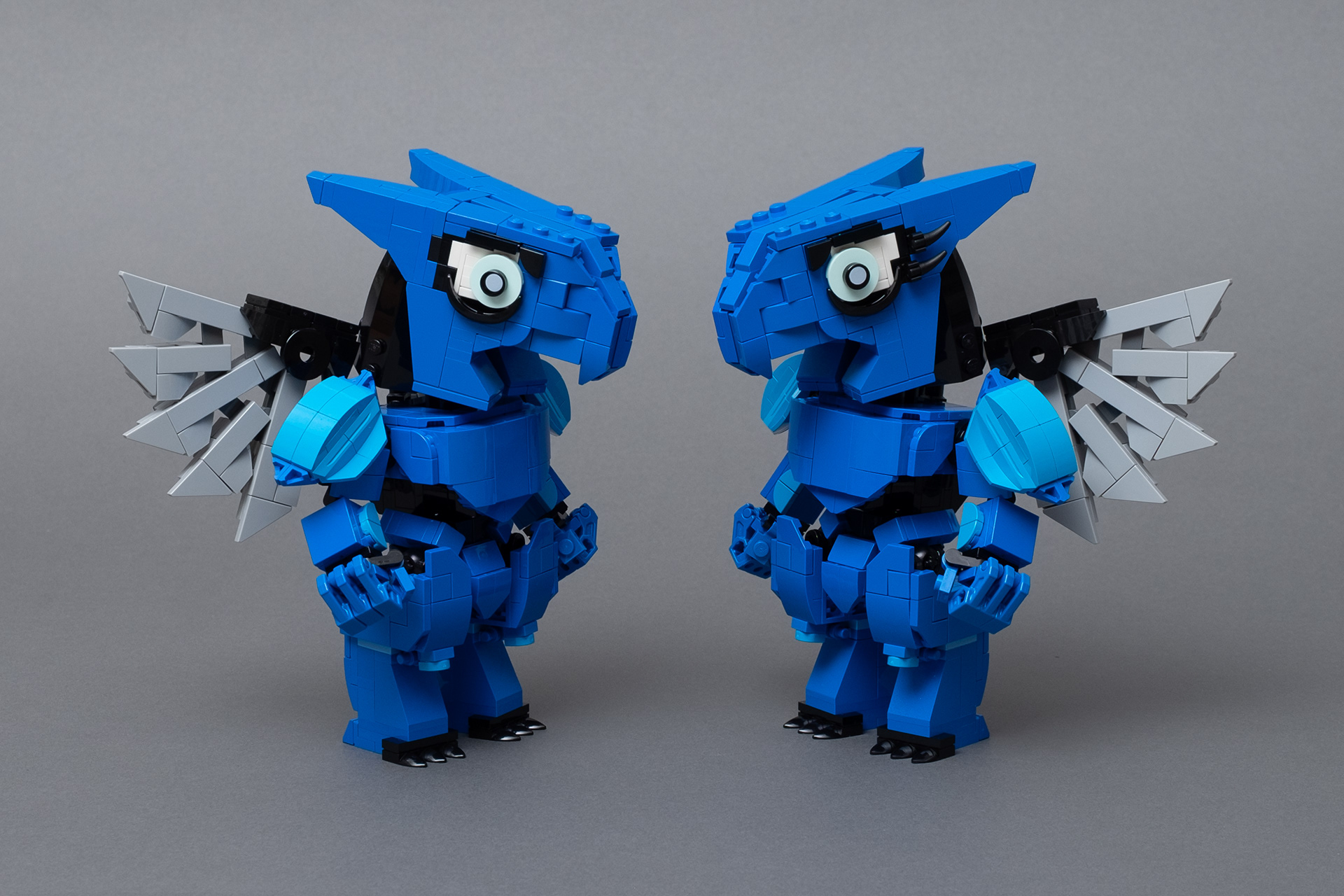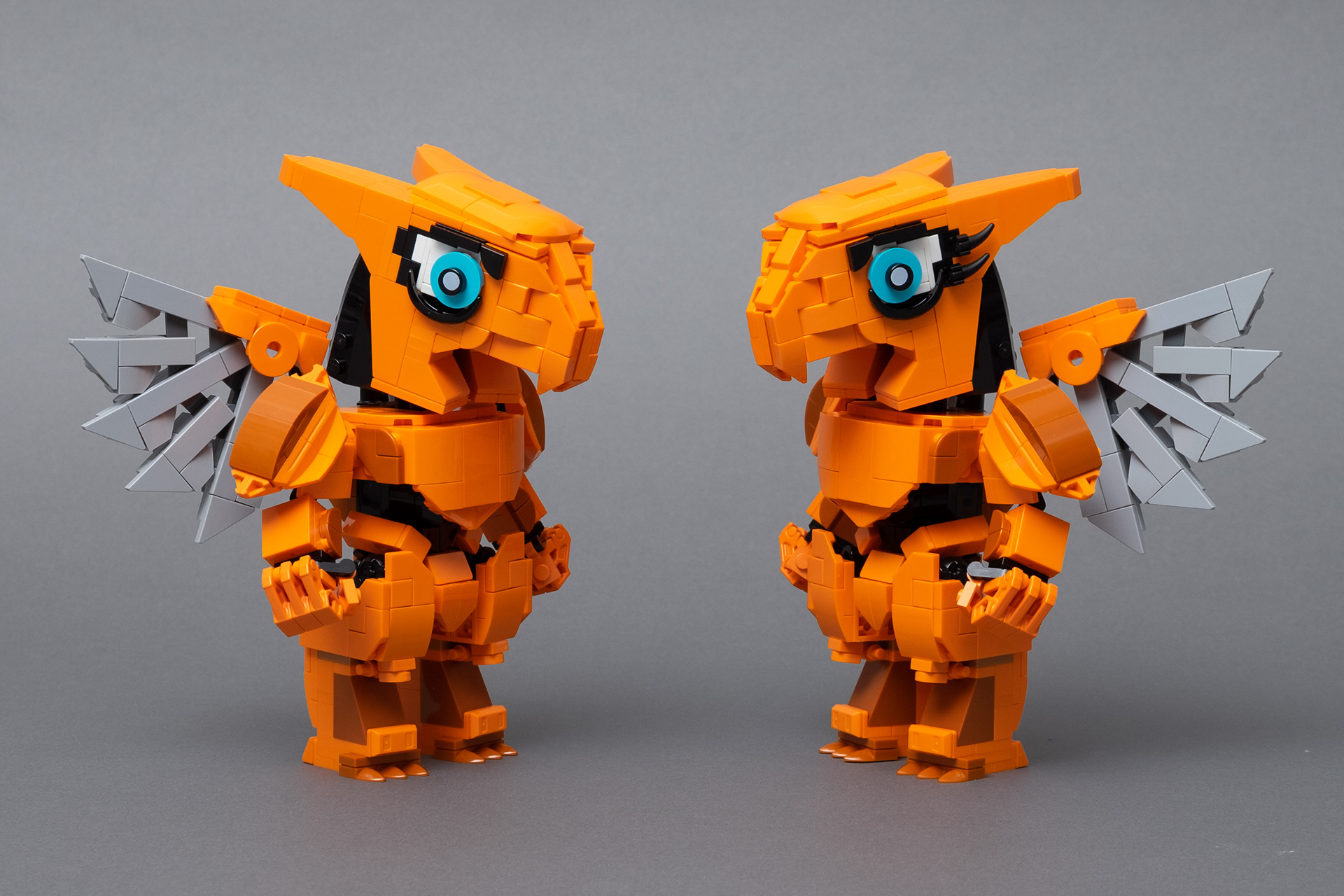 When designing the AORUS Chibi, I wanted to stay close to the original artwork. The head presented a particular challenge as it has a quite specific triangular shape. Those kinds of angles are difficult to rebuild without gaps in LEGO®, as wedge plates only align in certain ways. My goal was to capture the side-profile of the Chibi accurately, with a focus on the shape of the eyes and the beak. At the same time, I aimed to make the model is easy to build and sturdy enough to be played with.